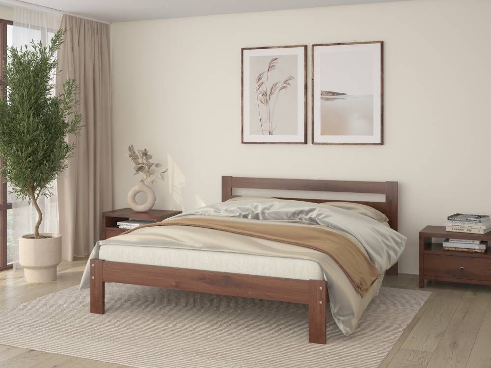 Деревянная кровать с низким изголовьем в классическом исполнении, изготавливается в разных размерах и цветах