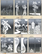 Номера рисунков без звездочек - это первая категория рисунка (самая простая и ее стоимость самая низкая), рисунок с одной звездочкой относится ко второй категории (чуть дороже), и с двумя - соответственно к третей (самая дорогая). Любой пескоструйный рисунок, представленный ниже можно выполнить в двух вариантах: основа зеркало, рисунок пескоструй, и наоборот - основа - пескоструй, а рисунок - зеркало. От того или иного вашего выбора стоимость нанесения пескоструйного рисунка не изменится.