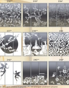 Предлагаем вам ознакомиться с полным каталогом возможных пескоструйных рисунков от запорожской мебельной фабрики Берегиня. Обращаем ваше внимание, что стоимость пескоструйного рисунка изменяется в зависимости от размера фасада, а также от сложности рисунка. Номера рисунков без звездочек - это первая категория рисунка (самая простая и ее стоимость самая низкая), рисунок с одной звездочкой относится ко второй категории (чуть дороже), и с двумя - соответственно к третей (самая дорогая). Любой пескоструйный рисунок, представленный ниже можно выполнить в двух вариантах: основа зеркало, рисунок пескоструй, и наоборот - основа - пескоструй, а рисунок - зеркало. От того или иного вашего выбора стоимость нанесения пескоструйного рисунка не изменится.