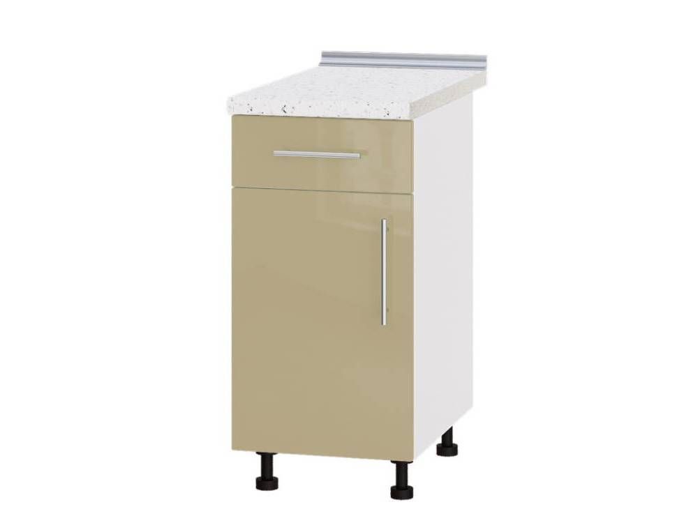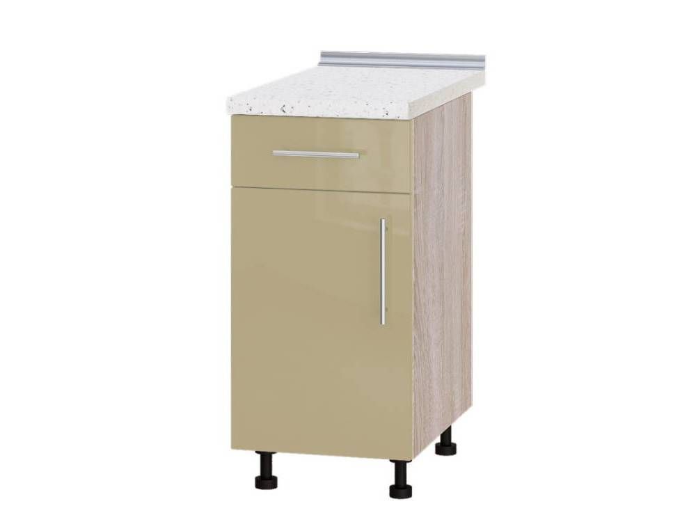 Тумба нижняя комбинированная Н74-400 из кухни Модерн запорожской мебельной фабрики Эверест. Особенностью данной секции является наличие небольшого выдвижного ящика для хранения столовых приборов и однодверного отделения, разделенного внутри полкой для удобства хранения.