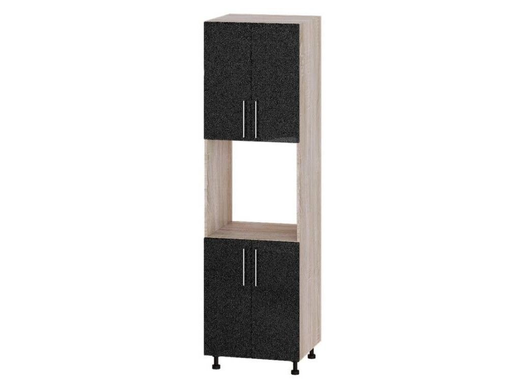 Пенал разделен на три отделения: верхнее и нижнее закрытые дверцами и внутри оснащены полкой, центральное же открытое и предназначено для установки встраиваемой бытовой техники.