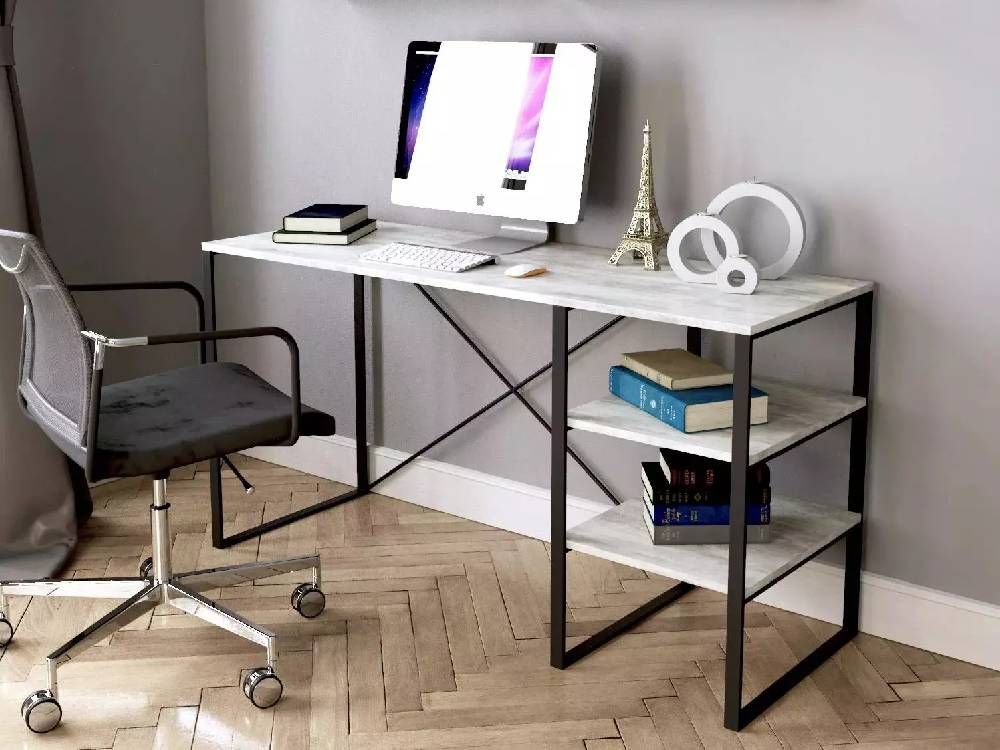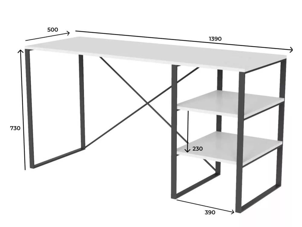 Конструкция стола проста и надежна, благодаря металлическому каркасу, который выполнен из квадратной трубы 10х30 мм, обеспечивая долговечность модели. Стол оснащен двумя открытыми полками, на которых удобно разместить документы для работы, тетради и другие рабочие материалы. Столешница размером 140х50 см предоставит значительную поверхность для работы за ноутбуком, выполнения домашних заданий или занятий творчеством в свободное время.