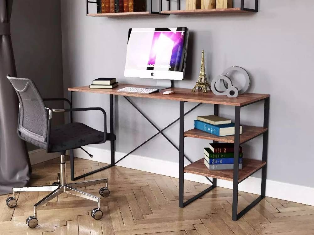 Конструкция стола проста и надежна, благодаря металлическому каркасу, который выполнен из квадратной трубы 10х30 мм, обеспечивая долговечность модели. Стол оснащен двумя открытыми полками, на которых удобно разместить документы для работы, тетради и другие рабочие материалы. Столешница размером 140х50 см предоставит значительную поверхность для работы за ноутбуком, выполнения домашних заданий или занятий творчеством в свободное время.