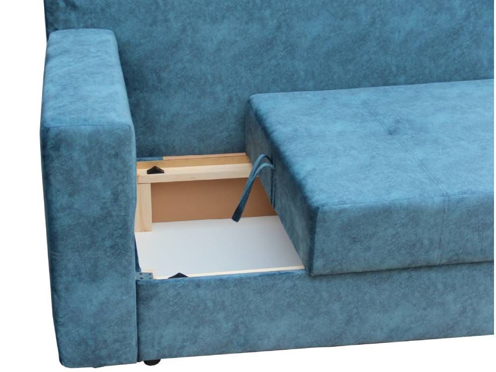 Тахта Даффи оснащена небольшой нишей для белья, а сторону размещения подлокотника вы можете выбрать при заказе.