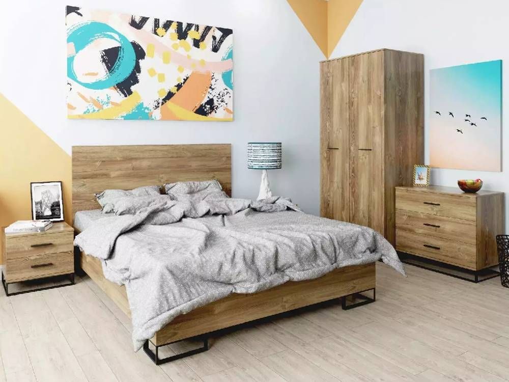 Компактная прикроватная тумбочка на два выдвижных ящика в стиле лофт, доступна в нескольких оттенках