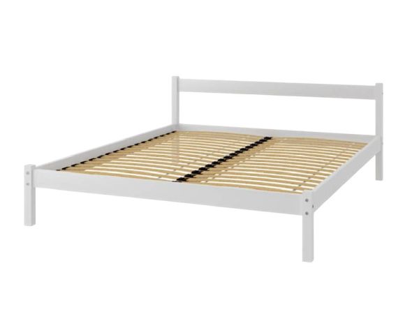 Бюджетна модель дерев'яного ліжка виготовляється у натуральному та білому кольорі, в основі пружні ламелі