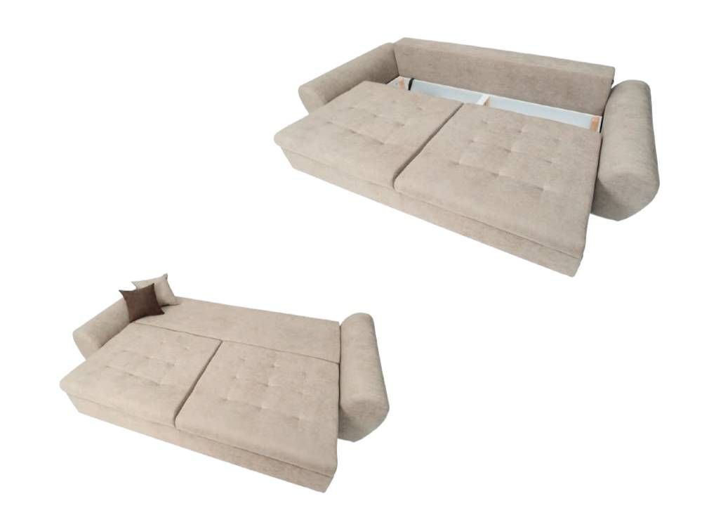 Конструкція дивана включає надійний дерев'яний каркас та простору нішу для білизни. Як наповнення використовується пружинний блок "змійка", який забезпечує правильний розподіл навантаження, пружність та стійкість до деформацій, та шар пружного пінополіуретану. Для трансформації дивана досить висунути сидіння вперед і опустити спинку – ваше спальне місце готове.
