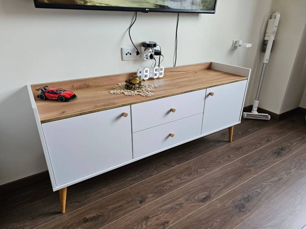 Комод із тумбами Asgard - універсальна модель з колекції меблів Asgard від компанії ART in HEAD, може доповнити інтер'єр вашого будинку як комод для спальні або як тумба для телевізора у вітальні. Ви можете придбати цю модель як самостійний предмет інтер'єру або доповнити його одним із комодів колекції, які представлені у різних розмірах. Як і інші елементи колекції комод виділяється лаконічним дизайном, високою функціональністю та поєднанням білого кольору з теплим відтінком дуб крафт золотий. Ідеальний вибір для любителів мінімалізму та природних фактур.