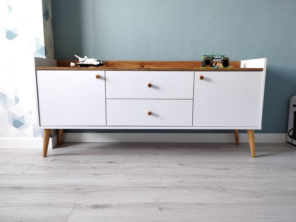 Конструкція даної моделі включає два висувні ящики по центру і два відділення я розпашними дверцятами з боків. Відмінною особливістю конструкції є бортик по периметру, який утворюється корпусом, що виступає. Це не тільки візуально відрізняє комод Asgard від інших моделей, але також дозволяє не перейматися тим, що речі можуть впасти на підлогу. Поверхня комода досить довга для того, щоб використовувати для різних цілей: розставити елементи декору або поставити телевізор, акустичну систему або ігрову консоль.