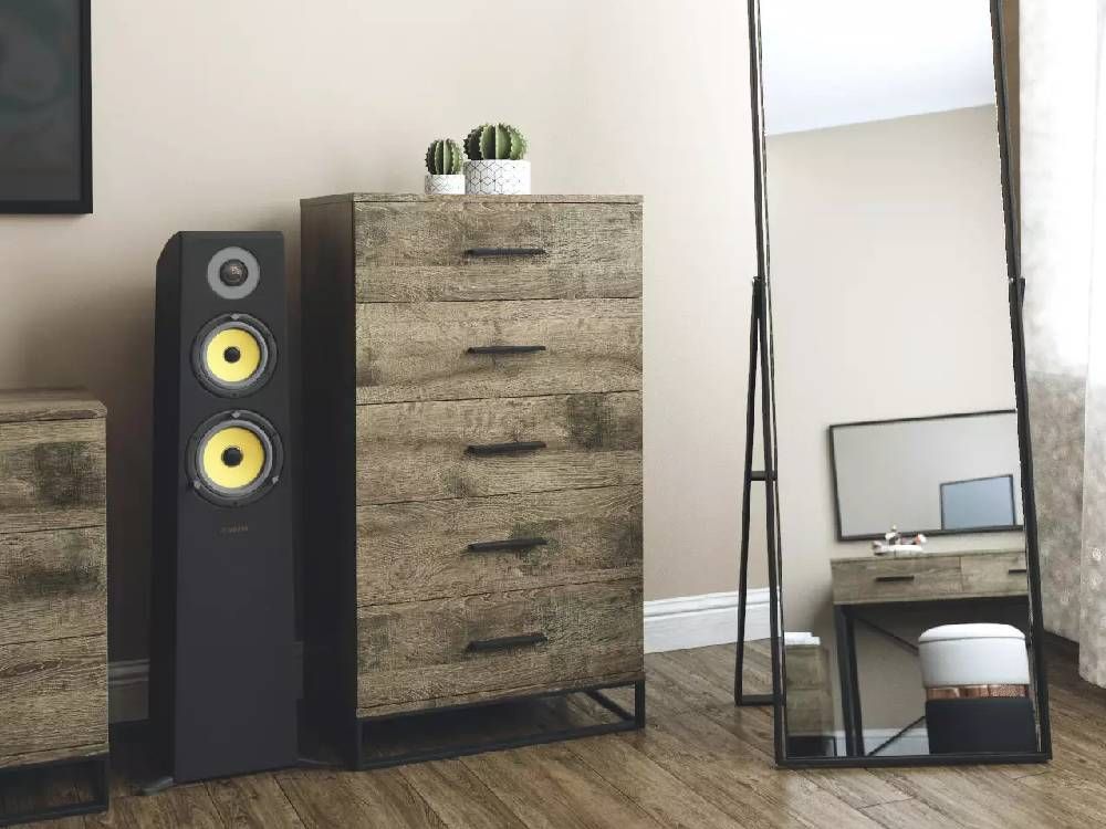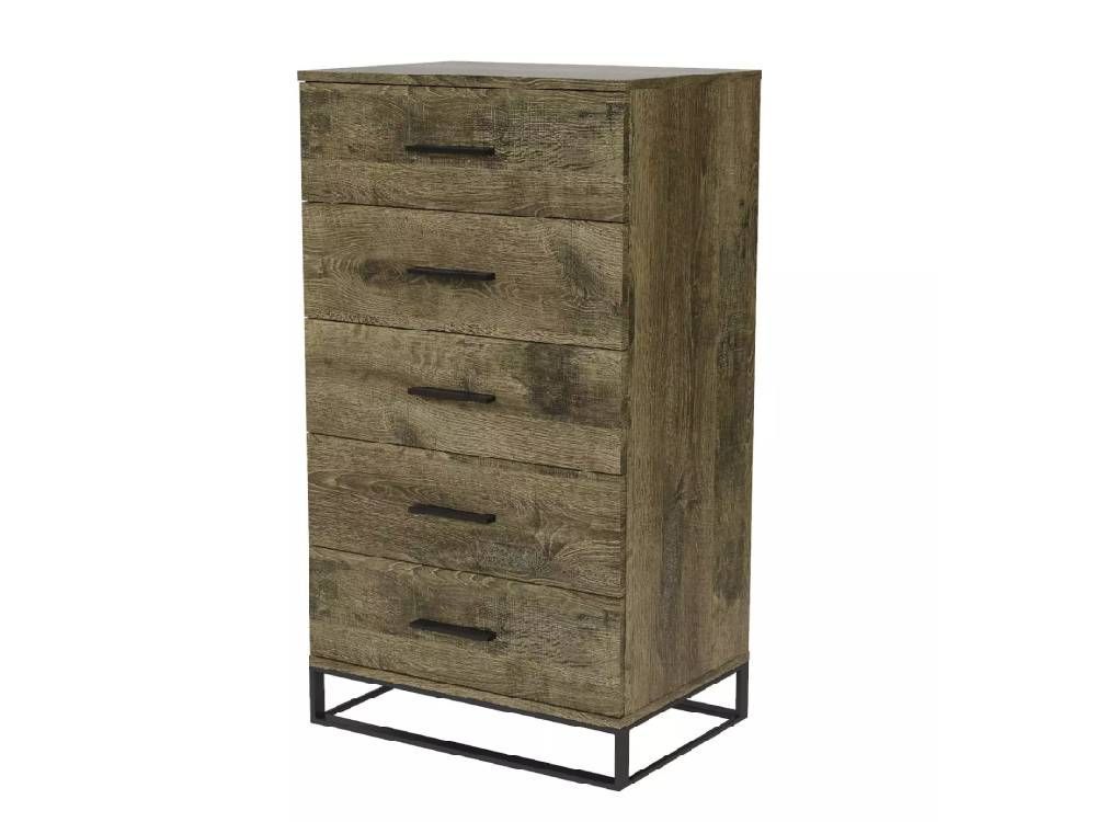 Ця модель складається з п'яти висувних ящиків на телескопічних напрямних. Комод високий і вузький, займає небагато місця, при цьому досить місткий, дозволить зберігати значну кількість речей. Він універсальний і практичний, у його ящиках ви зможете зберігати одяг, аксесуари, документи, різні гаджети та багато іншого. Конструкційна особливість даної моделі - цільнозварна металева основа, на якій стоїть комод. Такий прийом дозволяє візуально полегшити конструкцію, а також залишити вільний доступ для прибирання. Фасади ящиків доповнені вузенькими ручками, підтримуючи загальний стиль комода.