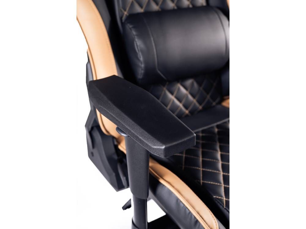 Крісло Дріфт - модель від компанії Tehforward створена для тих, хто цінує не лише комфорт, а й стиль у ігровій чи робочій зоні. Тому в першу чергу зазначимо, що оббивка крісла виконана з приємної на дотик екошкіри класичного чорного кольору з елегантними коричневими вставками, які надають виробу динамічного та преміального вигляду. Крім того, дизайн крісла доповнений декоративним ромбовидним рядком на сидінні та спинці, який не тільки підкреслює стиль, але й надає об'ємності та виразності.