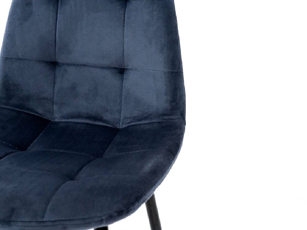 Дана модель стільця виділяється гармонійним поєднанням точених металевих ніжок та плавних заокруглених форм спинки та сидіння. Для оббивки використовується м'яка та приємна на дотик велюрова тканина у двох відтінках. Сидіння і спинка мають декоративну прострочку з втяжками, що надає стільцю привабливості.