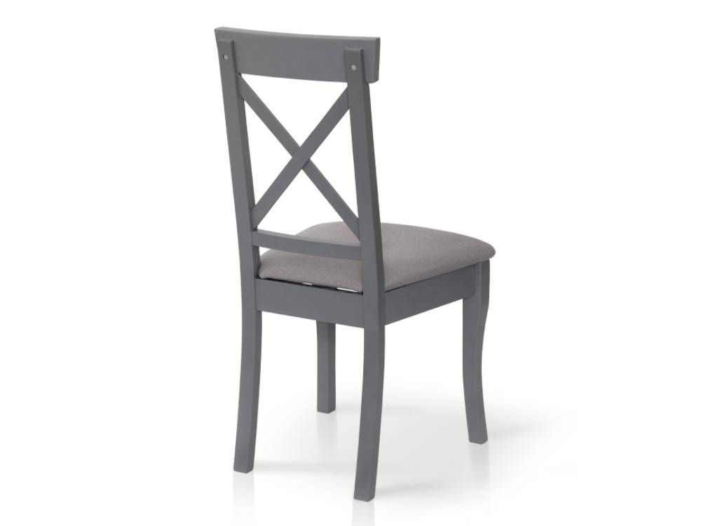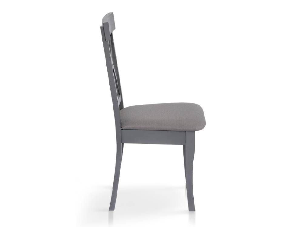 Дана модель стільця виділяється не тільки гарним зовнішнім виглядом, але і зручністю. Спинка стільця висока і представлена у вигляді двох схрещених планок, які створюють опору для спини та надають жорсткості конструкції. Сидіння стільця глибоке і м'яке, у якості оббивки використовується тканина сірого кольору. Поєднання білого каркаса та сірого сидіння виглядає ефектно і, звичайно ж, освіжить інтер'єр кімнати.