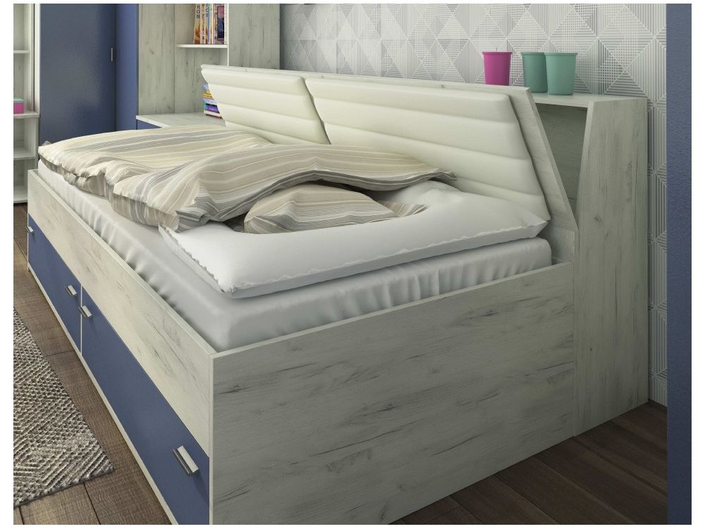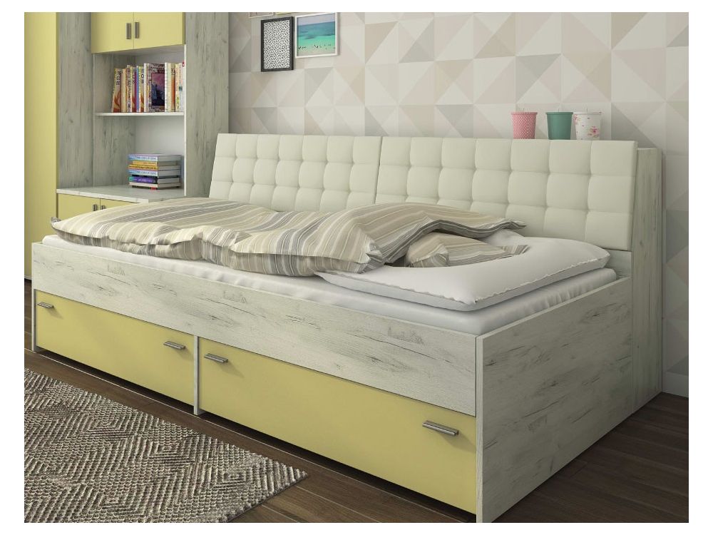 Найголовніше, що тут є два великих містких скриньки, які відкриваються з допомогою телескопічних направляючих. У них легко можна скласти іграшки, одяг та інші речі. Крім того, м'який бортик з шкірозамінника відкидається, завдяки чому відривається доступ до великої ніші на всю довжину ліжка. Тут чудове місце для зберігання постільної білизни або одягу.