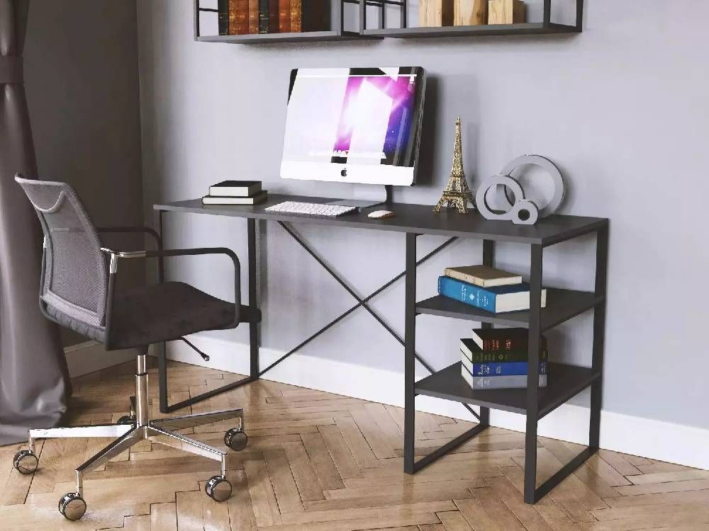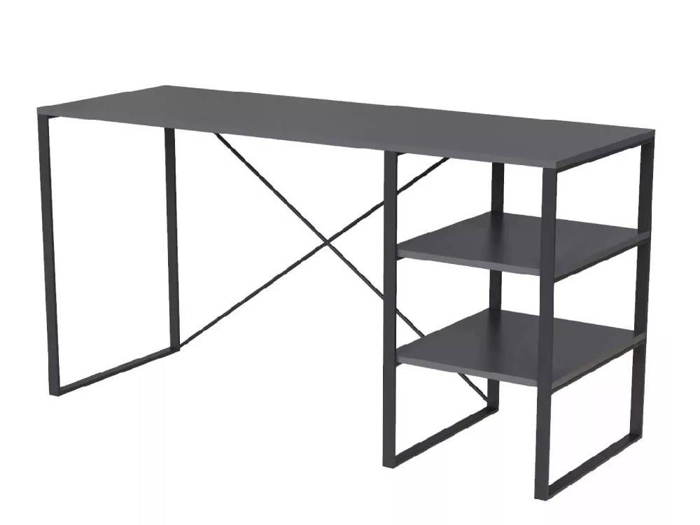Конструкція столу проста і надійна завдяки металевому каркасу, який виконаний з квадратної труби 10х30 мм, забезпечуючи довговічність моделі. Стіл оснащений двома відкритими полицями, на яких зручно розмістити документи для роботи, зошити та інші робочі матеріали. Стільниця розміром 140х50 см надасть значну поверхню для роботи за ноутбуком, виконання домашніх завдань чи творчих занять у вільний час.