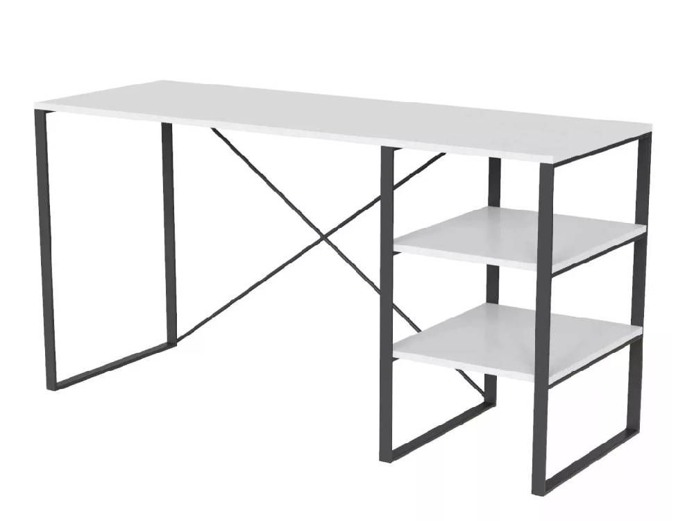 Конструкція столу проста і надійна завдяки металевому каркасу, який виконаний з квадратної труби 10х30 мм, забезпечуючи довговічність моделі. Стіл оснащений двома відкритими полицями, на яких зручно розмістити документи для роботи, зошити та інші робочі матеріали. Стільниця розміром 140х50 см надасть значну поверхню для роботи за ноутбуком, виконання домашніх завдань чи творчих занять у вільний час.