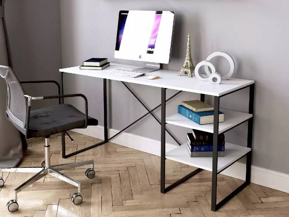 Стильний письмовий стіл з відкритими полицями на металевому каркасі, пропонується в різних відтінках