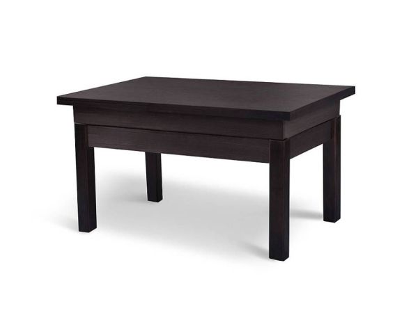 Стіл оснащений простим та надійним механізмом трансформації з газовими підйомниками та пружинами, які забезпечують плавне та легке розкладання. Механізм покритий порошковою фарбою, що захищає металеві елементи від зношування та продовжує термін служби виробу. Ніжки виготовлені з натурального дерева (тополя) - вони надають конструкції стійкості та надають інтер'єру природного тепла. Стільниця з ламінованої ДСП відрізняється приємною текстурою, стійка до подряпин та вологи, а товста пластикова кромка по периметру забезпечує захист від пошкоджень та зберігає акуратний вигляд протягом багатьох років.