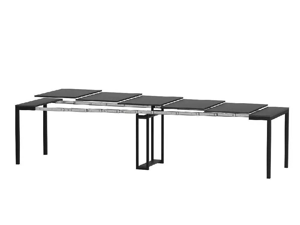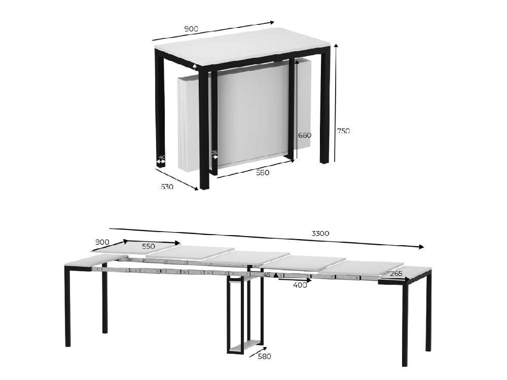 Конструкція столу міцна та надійна завдяки металевому каркасу, виконаному з профільної труби 40х40 мм. Добре продумане зберігання додаткових вкладок, вони розміщуються в центральній частині столу, яка також виступає опорою при збільшенні розміру моделі. Для стільниці використовується ламіноване ДСП, товщиною 18 мм, яка відрізняється високою стійкістю до зношування, дозволяючи зберігати прекрасний зовнішній вигляд столу тривалий час експлуатації. Для трансформації використовуються телескопічні напрямні товщиною 50 мм, що дозволяють розкласти стіл легко та плавно, без зайвих зусиль, чудово витримують щоденні навантаження.