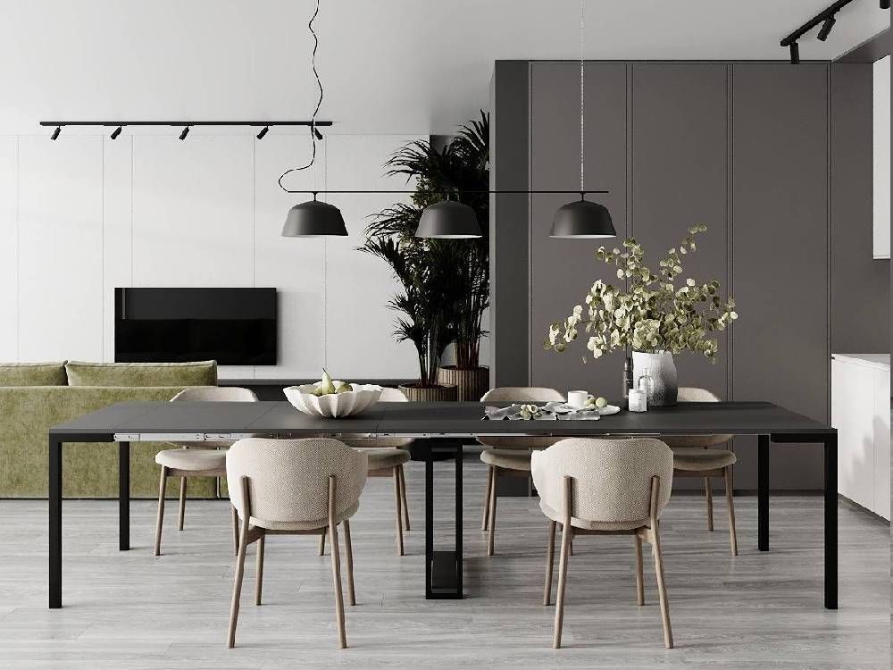 Стіл Sensei – стильне рішення для вашої вітальні від компанії ART in HEAD. У зібраному стані це компактний столик на чотири персони, виконаний у популярному стилі лофт. За допомогою телескопічних напрямних можна плавно збільшувати довжину столу за допомогою додаткових вставок шириною 50 см, таким чином збільшивши довжину столу до максимальних 330 см, за яким з комфортом може розміститися компанія до 10 осіб. Таких вставок у комплекті 5 штук, що дозволить вам регулювати довжину столу в залежності від необхідності, ви можете використовувати дві вкладки та отримати стандартний обідній стіл на 6 персон завдовжки 153 см. Стіл Sensei пропонується у трьох найбільш затребуваних відтінках – білий, антрацит та дуб сонома.