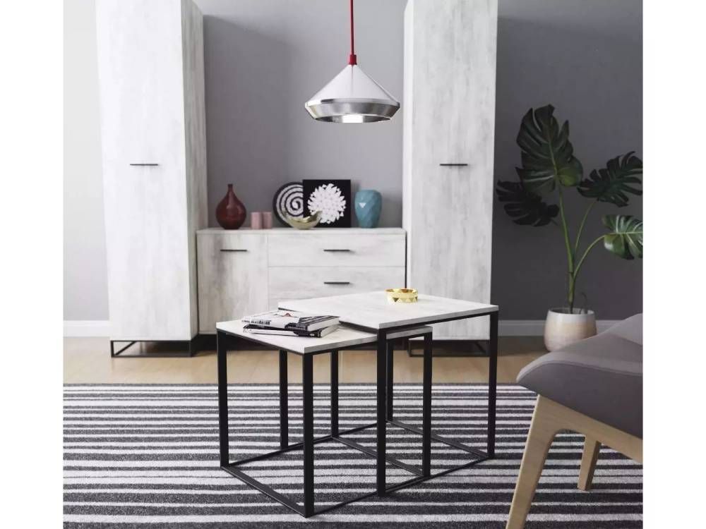 Стійкість і надійність конструкції надає металеву основу із квадратного профілю, пофарбованого в чорний колір. Стільниця журнальних столиків виконана з ламінованої ДСП, завтовшки 16 мм. Таке поєднання матеріалів забезпечує високу якість та чудовий вигляд виробу довгий час використання.
