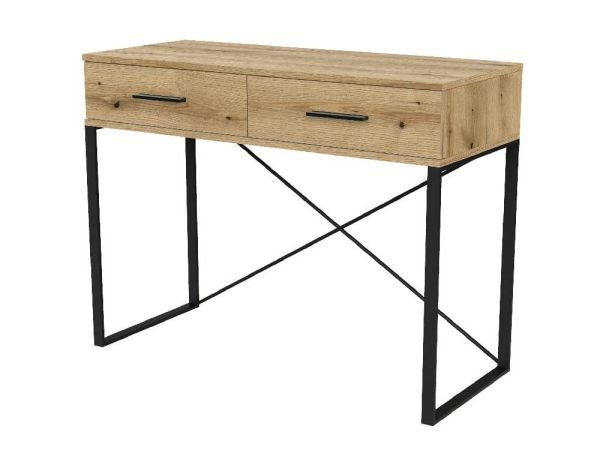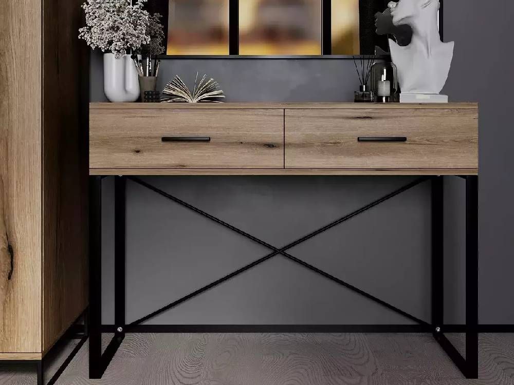 Сучасний туалетний столик на металевій основі, оснащений двома висувними ящиками, пропонується у кількох стильних відтінках