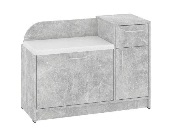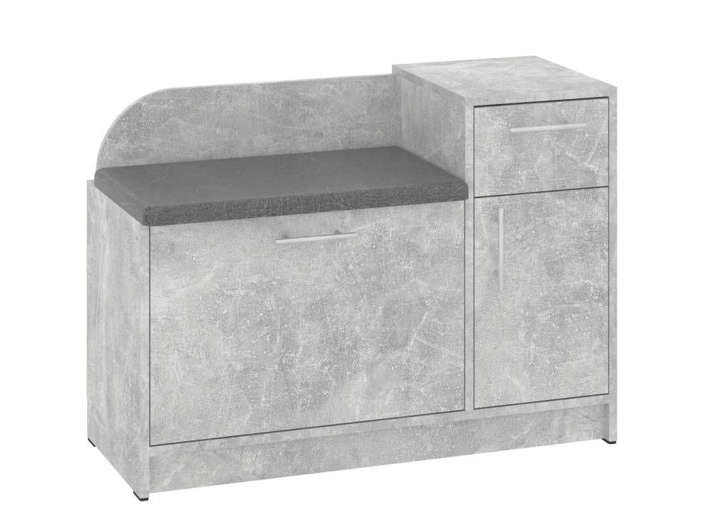 Конструкція тумби передбачає м'яке сидіння, закрите відділення з відкидними дверцятами, в якому можна зручно розмістити кілька пар взуття, а також невелика тумба з висувним ящиком і відділенням з дверцятами, що розстібаються, і поличкою всередині. У такій тумбі зручно розмістити різні аксесуари, засоби догляду за взуттям.